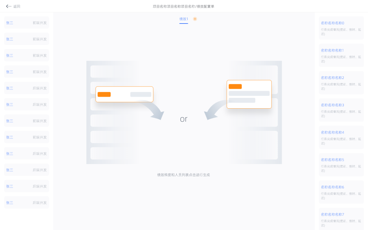 左侧显示人员列表,右侧显示绩效模板,点击即可使用。