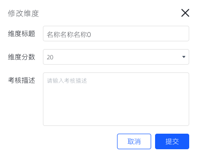 在中间操作区域中点击绩效纬度模块可修改绩效内容和分数,点击「提交」即可。